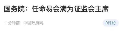 最新重磅!中共中央决定,任命易会满同志为中国证监会党委书记,免去刘士余同志的中国证监会党委书记职务。国务院决定,任命易会满同志为中国证监会主席,免去刘士余同志的