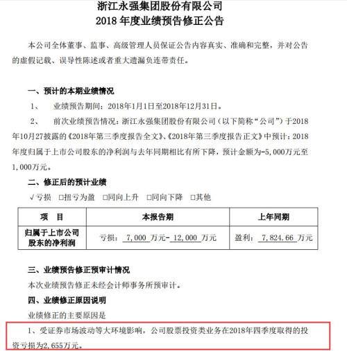 浙江永强(行情002489,诊股)炒股使得2018年四季度录得2655万元投资亏损,也将部分上市公司炒股导致业绩大幅波动的现象再次暴露在投资者面前。 在此之