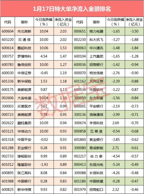 两市全天特大单净流出19.86亿元,其中9股特大单净流入超亿元,市北高新(行情600604,诊股)特大单净流入2.03亿元,特大单净流入资金居首。沪指周四收