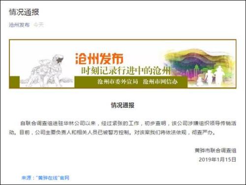 日前,河北黄骅市组成联合调查组进驻河北华林酸碱平生物技术有限公司,经过紧张的工作,初步查明,该公司涉嫌组织领导传销活动。目前,公司主要负责人和相关人员已被警