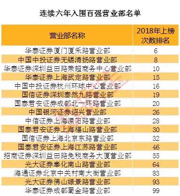 龙虎榜席位出现新老交替,但一些老牌游资宝刀未老,常年现身龙虎榜席位中。从2013年算起,有17家券商营业部连续6年位列龙虎榜上榜次数百强名单之中。既有长三角地区的中信证券上海溧阳路营业部、中国中投证券杭州环球中心营业部、中国中投证券无锡清扬路营业部、光大证券(601788,诊股)奉化南山路营业部等,也有珠三角地区的国信证券深圳泰然九路营业部、光大证券佛山绿景路营业部等。