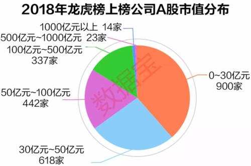 市场交易方面,龙虎榜资金2018年共参与了2334只股票,占总数比例为65%,参与度较2017年小幅上升,但与2015年的高峰相比,仍存在不小差距。龙虎榜资金炒作的股票都有哪些特征?分市值来看,小市值股票仍是龙虎榜资金首选。数据宝统计显示,上述2334只股票中,截至2018年底,逾1500只股票A股市值在50亿元以下,占参与股票总数的65%,而100亿元以上A股市值股票占比不足20%。
