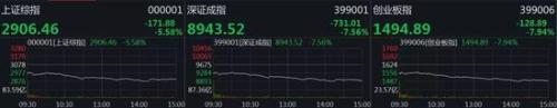 沪指大跌5.58%,盘中一度失守2900点,创2016年2月25日以来最大单日跌幅;