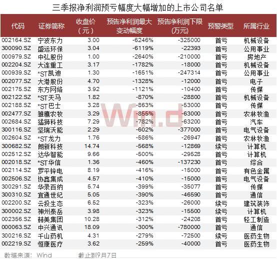 而在三季度业绩预亏的109家公司中,来自机械设备行业的公司有20家,计算机行业14家,电气设备12家,公共事业11家,化工、电子各9家,有色金属、家用电器各7家。