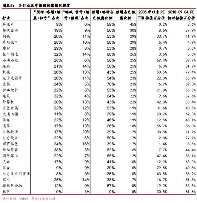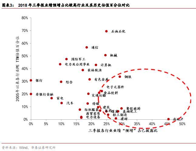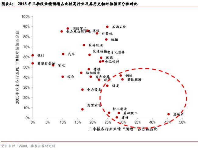 房地产、餐饮旅游、钢铁、基础化工、建材、轻工制造三季报业绩预增占比居前。估值方面,PE(TTM)估值均处在2005年以来历史中位数以下、PE(TTM)相对估值(行业估值/万得全A非金融石油石化板块)也处在历史中位数以下,建议关注。