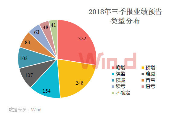 Wind数据统计显示,1169家发布前三季度业绩预告的公司中,有248家公司表示业绩预增,154家公司续盈,48家公司扭亏,322家公司业绩略增,合计净利润同比增长的公司达685家,占已经发布业绩预告公司的比重为59%;另外,有103家公司预减,107家公司略减,83家公司首亏,63家公司续亏。截至目前,仍有41家公司表示业绩不确定。