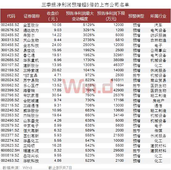 此外,苏宁易购、乐心医疗、海普瑞、帝欧家居、合肥城建、三维通信、威华股份等154只个股三季度净利润有望翻番;大康农业、赞宇科技、天润数娱、奥特佳、南极电商、鲁阳节能、博深工具、云图控股等188只个股预计三季度净利润预增幅度均在50%以上。