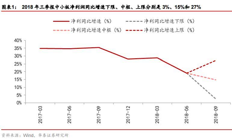 华泰证券预计三季度实际净利同比增速相比中报将略回落。三季度单季度净利环比增速的下限、中枢、上限增速分别是-34%、-4%和25%,中枢增速较去年三季度单季2%的环比增速有所回落。按照三季报净利润下限、中枢、上限来估算,中小板当前分别对应的PE(TTM)24倍、22倍和21倍,处在2005年以来历史7.5%、4%和3%分位水平。