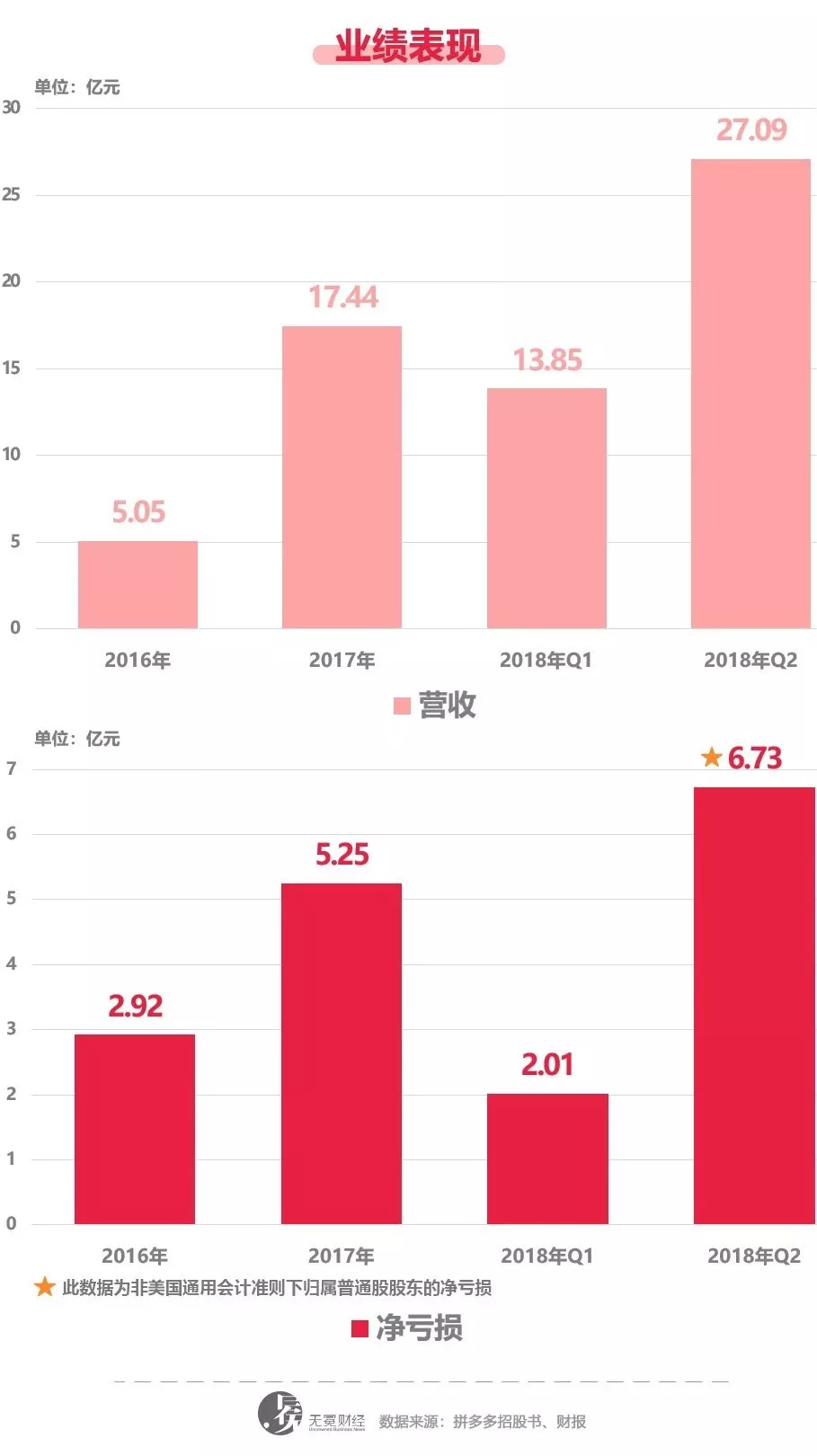 拼多多上市后的第一份财报很好看,尚未能体现上市后以及假货风波的影响。摆在它面前的至少有两个问题:假货问题如何解决?帮助其迅速长大的C2B模式是否能持续有效? 本文由无冕财经(ID:wumiancaijing)原创并首发,作者:陈涧,编辑:梁爽,设计:甄开心,编辑助理:陈悦珊 上市40天,拼多多的一举一动,还是能轻易成为话题中心。 8月31日,拼多多发布的2018年二季报显示,虽然其亏损仍在持续,但总营收、GMV(商品总额)、活跃买家数等都出现大幅增长,其中总营收约为27.09亿元,同比大增248