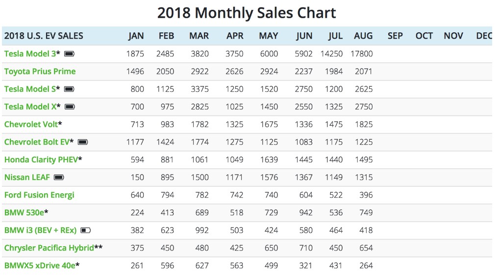 特斯拉(TSLA)Model 3等三车型成美国8月最畅销电动车