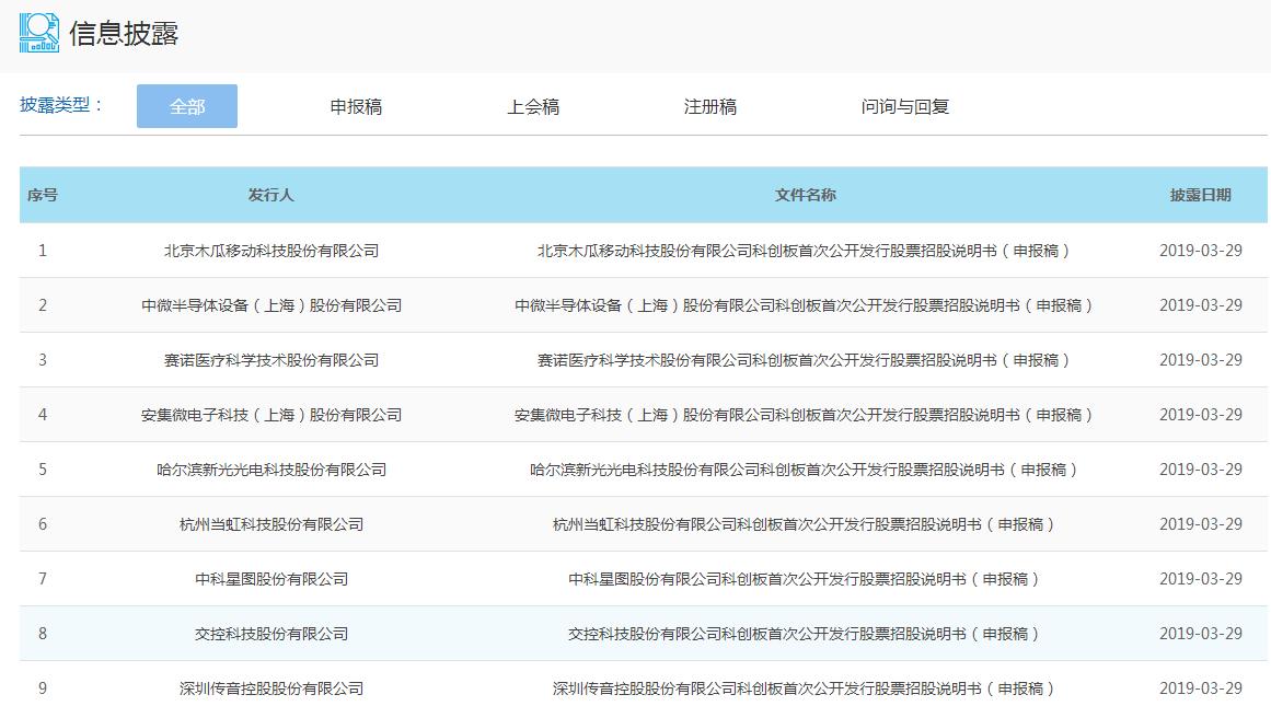 上交所29日披露新受理科创板上市企业名单,截至发稿共九家,分别为深圳传音控股股份有限公司、赛诺医疗科学技术股份有限公司、安集微电子科技(上海)股份有限公司、