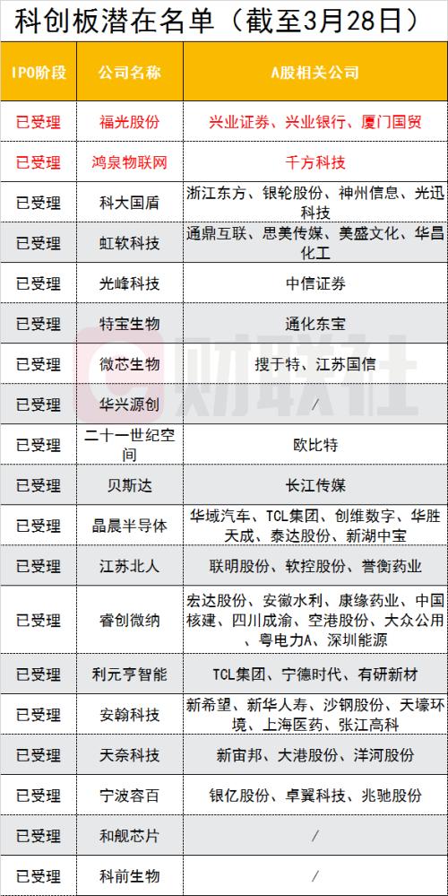 上交所披露受理两家科创板企业:杭州鸿泉物联网技术股份有限公司和福建福光股份有限公司。影子股如下:福光股份:兴业证券(行情601377,诊股)、兴业银行(行情