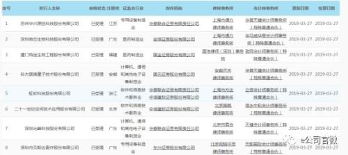 3月27日,上交所更新了第二批科创板获受理名单,共8家公司,分别是华兴源创、微芯生物、特宝生物、科大国盾、虹软科技、二十一世纪空间技术、光峰科技、贝斯达。其