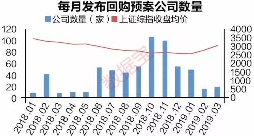 2018年市场走势低迷,A股迎来了史上最大一波回购潮。而开年来A股强势上攻,上市公司回购热潮随之降温,2月份发布回购预案公司数量环比下降近70%。股价低迷上
