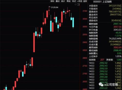 昨日,上证指数下跌1.51%,报收2997.10点,创业板指下跌2.32%。在本周一北上资金净流出超过百亿元的情况下,数据显示,昨日北上资金净流入13.55