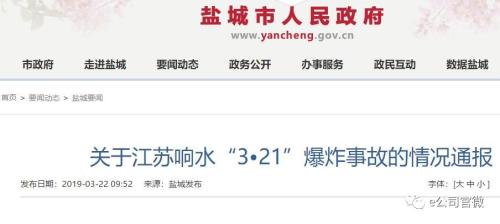 2019年3月21日14时48分,江苏省盐城市响水县陈家港镇天嘉宜化工有限公司(简称“天嘉宜化工”)化学储罐发生爆炸事故,并波及周边16家企业。事故已造成4