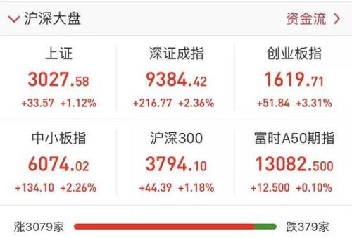 今日上证指数开盘涨0.73%,时隔8个多月重返3000点!!!截至15:00收盘,上证指数大涨1.12%,收于3027.58点,深证成指涨2.36%,创业板