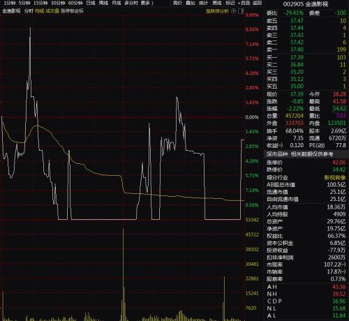 今日A股下跌,跌幅不大,盘面上也是乏善可陈。不过一只个股的“夸张表演”成为了市场最大的明星,它就是金逸影视(行情002905,诊股)。打开金逸影视的K线图,