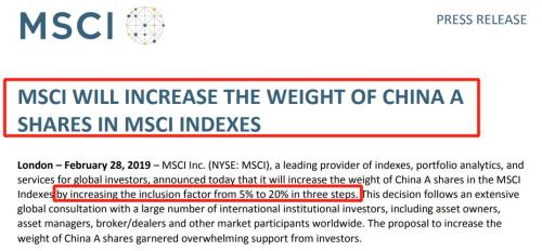 来源:广发策略研究作者:戴康 陈伟斌报告摘要 ● 3月1日,MSCI公布对进一步增加A股在MSCI指数中权重的咨询结果, 决定将现有大盘A股在MSCI全球基