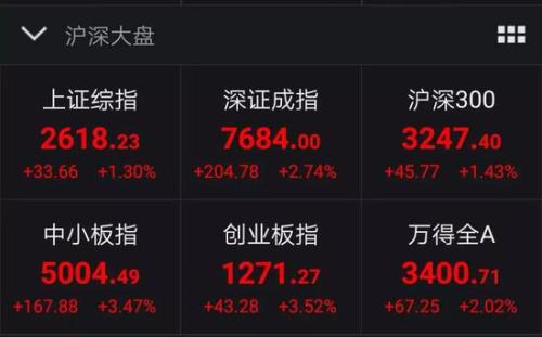 狗年完美收官!今日,农历狗年的最后一个交易日。在昨晚多重利好消息刺激下,A股出现难得一见的普涨行情。截至收盘,上证指数涨1.30%,报2618.23点;深证
