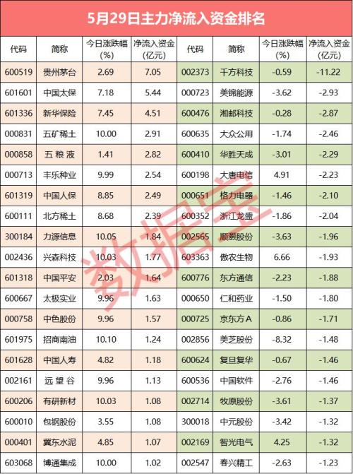 5月29日,两市主要指数整体涨跌不一。在这样的背景下,从数据上看,两市主力资金和两融资金方面均呈现流出态势。这表明,在盘面企稳回升的背景下,由于此前盘面快速