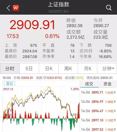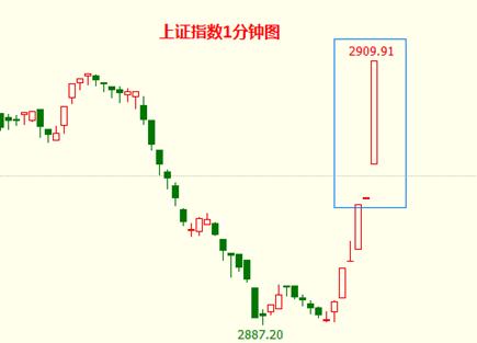 就在临近收市之际,沪指依然处于下跌状态,就当大家以为全天就要注定收跌,尾盘罕见急速拉升,短短几分钟时间就将主要指数从下跌拉向大幅上涨。有人更是评论称,第一次