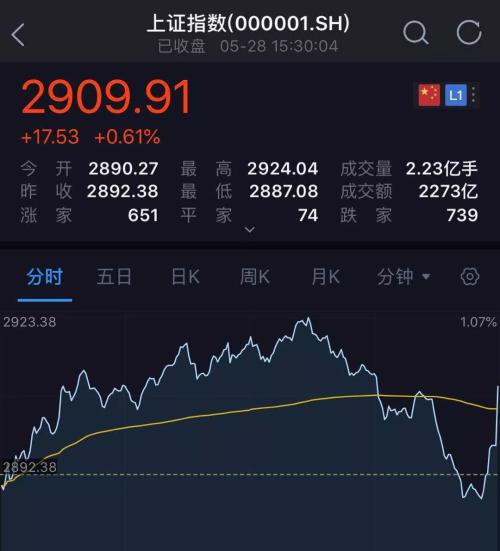 5月28日,沪深两市继续反弹,盘中一度冲高回落,但尾盘在北上资金的快速流入带动下,三大指数均在尾盘出现直线拉升。截至收盘,上证指数上涨0.61%,深证成指上