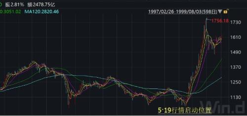 5·19行情已经20周年!1999年5月19日,A股在网络股的带领下一扫低迷,大幅攀升,上证综指当天一举突破5日线、10日线和20日线,收盘时上证综指、深证