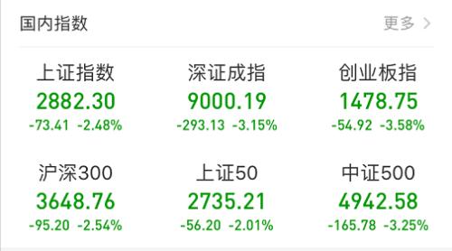 近期波动较大。今日,A股又出现单边大幅下挫,上证指数大跌2.48%,深证成指下跌3.15%,创业板指数3.58%,两市成交额5735亿元,较昨日有所放大,北
