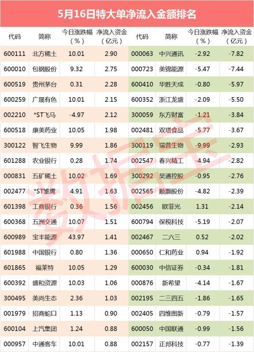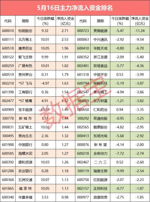 5月16日(周四),A股三大股指全线收涨。北上资金继昨日小幅净流入A股后,今日再度重返净流出态势。数据显示,北上资金今日净流出A股33.97亿元,其中沪股通