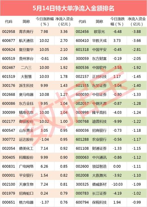 今日有11只个股特大单净流入超亿元。青农商行(行情002958,诊股)特大单净流入3.36亿元,净流入资金规模居首。A股三大股指早盘低开高走,尾盘小幅回落。