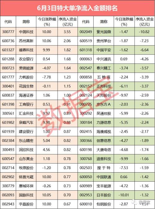两市全天特大单净流出150.31亿元,其中29股特大单净流出超亿元。周二,三大股指集体震荡下跌,沪指跌近1%,日K线3连阴。两市成交不足4300亿元,较上日