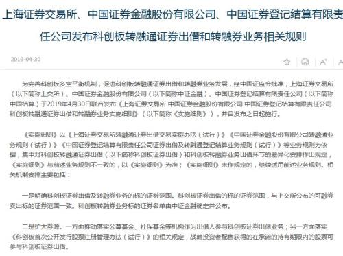 三部门联合发布科创板两融规则。 30日晚间,上交所、证金公司和中国结算联合发布了《科创板转融通证券出借和转融券业务实施细则》(简称《实施细则》),科创板转融