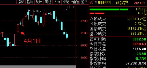 前半月“上山”,后半月“下山”。周一(4月29日),两市平开后市场全线下挫。沪指收报3062.50点,跌0.77%;深成指收报9622.49点,跌1.62%