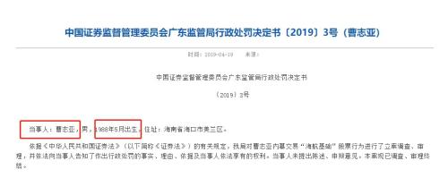 日前,广东监管局对海越能源(行情600387,诊股)前董秘曹志亚下达了行政处罚决定书,曹志亚因为内幕交易海航系另一家上市公司海航基础(行情600515,诊股