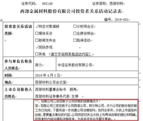 A股分拆上市破冰的消息刚传出,就已经有上市公司跃跃欲试。4月4日,西部材料(行情002149,诊股)公告,公司日前接受了中信证券(行情600030,诊股)调