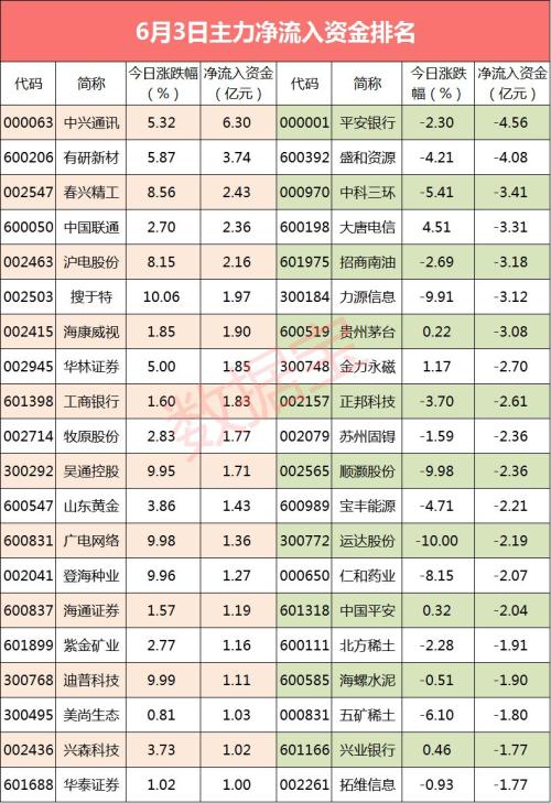 沪深两市全天特大单净流出90.8亿元,20股特大单净流入超亿元。6月份首个交易日,三大股指均冲高回落,沪指收跌0.3%,创业板指盘中一度涨逾1%,收跌0.9