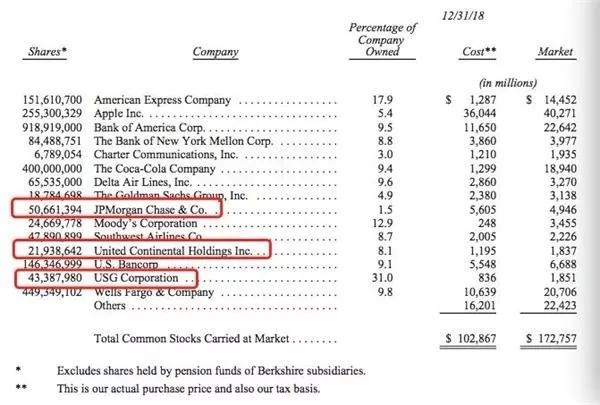 2018年底的巴菲特持仓一览表