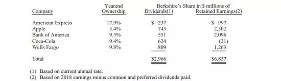 我们的被投资方去年给了我们38亿美元股息,这个数字在2019年还会增加。然而,远比股息更重要的是,这些公司每年留存的巨额利润。考虑一下,作为一个指标,这些数字只涵盖了我们最大的五个持仓股。