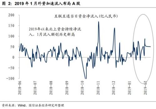 其中外资布局A股的力度在2019年年初有所增强,1 月开始资金流入呈现加速趋势。