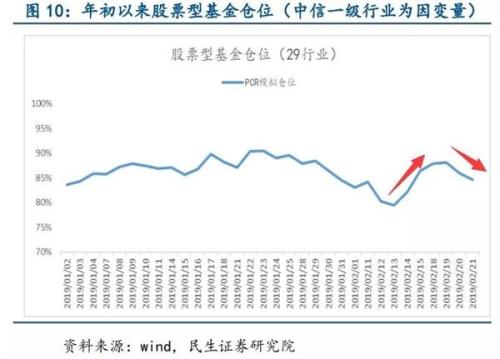 民生证券也提到,年初至 1 月中旬末,市场风险偏好提升,各类基金均有温和加仓;此后创业板探底,基金仓位逐渐下降;春节后市场强劲反弹,基金有明显加仓行为;而近期市场震荡加剧且多空分歧明显,基金仓位有所降低。
