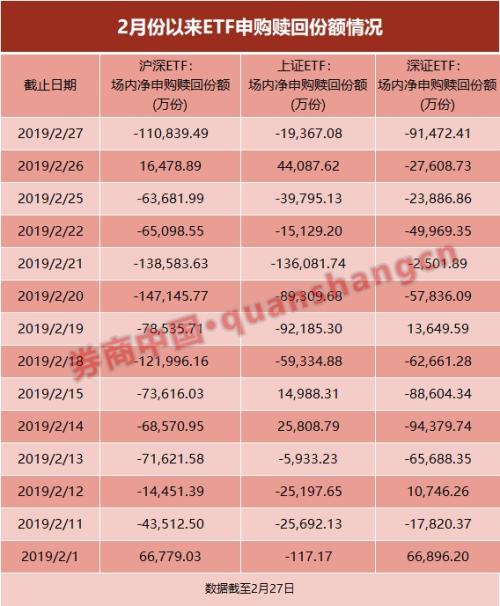 整体来看,被赎回的不仅仅只有创业板ETF,自2月1日以来,ETF市场几乎每天都呈现净赎回态势,仅2月1日和2月26日出现净申购。2月27日,ETF市场被净赎回11.08亿份。