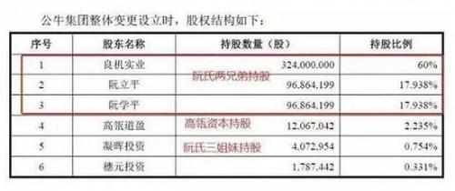 目前,公牛集团总股本为5.4亿股,最新股东名单中,第一大股东为良机实业,持股60%,阮立平和阮学平各持有良机实业50%的股份;作为自然人,阮立平与其弟弟阮学平各持有公牛集团股份17.938%;两人直接或间接控股公牛集团股份逾95.876%。