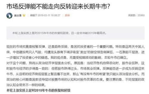 上海证大集团董事长、A股市场知名风云人物戴志康,近期发表文章表示,A股“本轮上涨实质上是对2015年牛市的恢复和延续,且一定会冲破2015年最高点”,在行业内引起较大关注。
