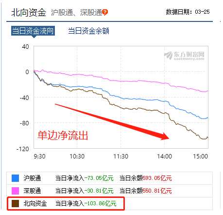 昨日,上证指数暴跌1.97%,北上资金罕见凶猛流出104亿元;,其中沪股通净流出73.05亿元,深股通净流出30.81亿元。逾百亿资金净流出,也创出了历史次高,仅次于2015年7月6日股灾时。