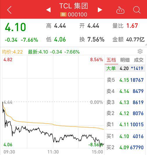 昨日,600亿市值的TCL集团,作为科创板影子股也涨停。不过今日开盘后快速下挫,单边下跌到收盘跌幅7.66%。