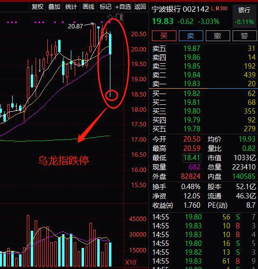 宁波银行(002142,诊股)异动遭乌龙指砸跌停