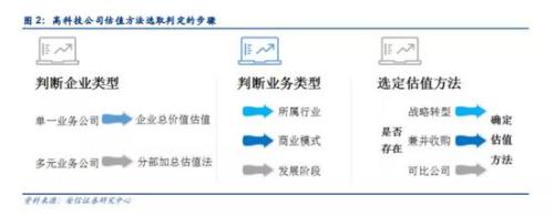 原有方法不适用,那么对科创板的企业如何进行估值?安信证券的报告认为,需要量体裁衣,选择最合适的估值方法。在确定选用何种估值方法前先做三个步骤的判断:一是判断企业究竟是单一业务型还是多元业务;二是从所属行业、商业模式、发展阶段这些维度去判断业务类型。三是判断是否存在战略转型、兼并收购、可比公司等情况,继而选定估值方法。