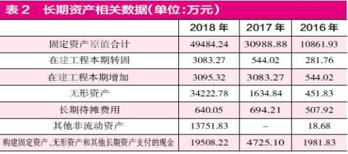 将上述长期资产各个项目在2018年的增加金额综合起来,可知长期资产增加金额高达64152.97万元。不过,同期的“购建固定资产、无形资产和其他长期资产支付的现金”也有19508.22万元,跟各项长期资产的增加额勾稽,两者间出现了44644.75万元的差额。同样的方法分析2017年的长期资产增加情况及其现金流量,也出现了19291.72万元的差额。