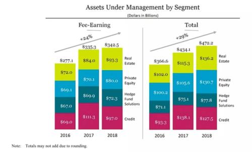 图:2018年黑石四大业务板块资产管理规模(来源:黑石年报)
